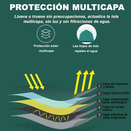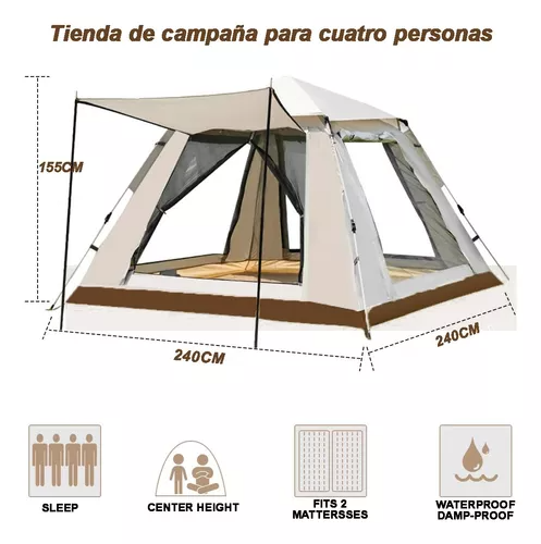La parte inferior de la tienda y la cuenta exterior están hechas de tela Oxford 210D, con una clasificación de impermeabilidad de 2000 mm, que se puede usar con lluvia ligera o lluvia moderada