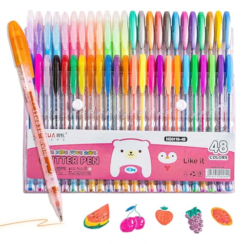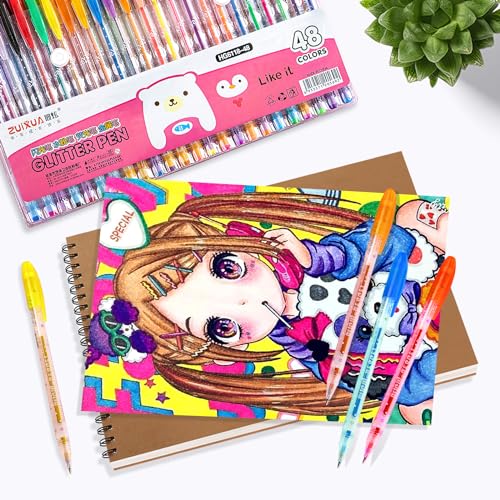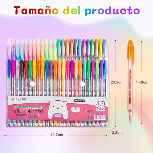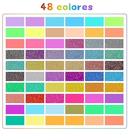 48 Plumas de Gel de Colores con Colores Metálicas, Glitter, Pastel Y Neón Bolígr