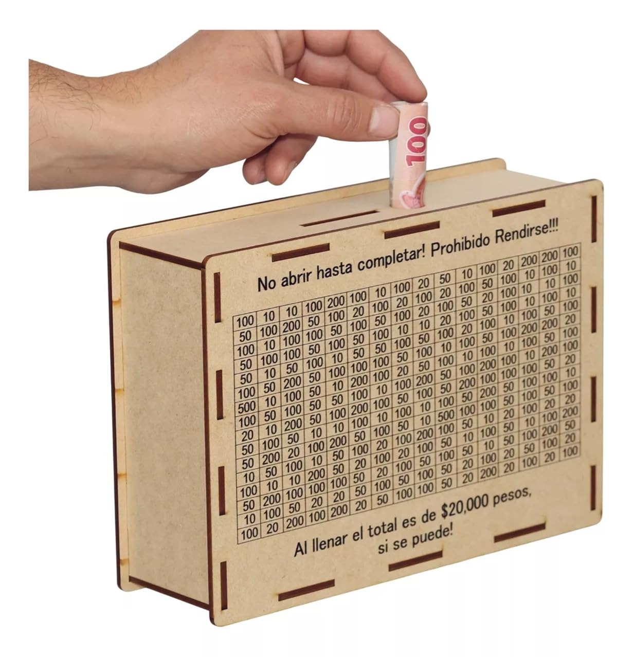 Alcancía de reto en MDF de 3mm Fabricada con precisión en MDF de alta calidad de 3 mm de grosor, ideal para ahorrar de manera creativa y organizada. Alcanza tus objetivos financieros ahorrando!
