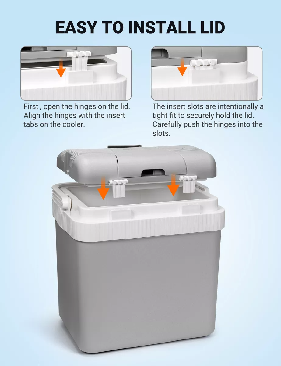 5. Elección familiar: ¡Nuestro enfriador de automóvil eléctrico de 24 litros y 12 V es capaz de manejar todo el menú del almuerzo o la cena de la familia! Su gran tamaño lo hace perfecto para viajes familiares por carretera o para cualquiera que pase mucho tiempo en su vehículo. Cargue el enfriador de 12 V en el parque o la playa. Con el asa plegable ergonómica, llevar esta hielera al lugar de picnic es pan comido.