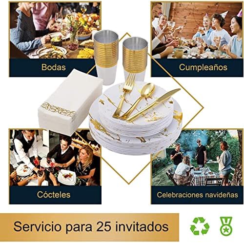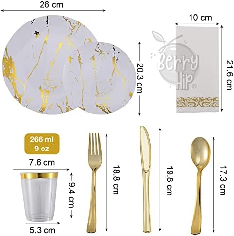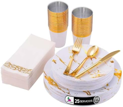 Berry Hip Vajilla Elegante Reutilizable Color Blanco con Dorado de 175 piezas: 5