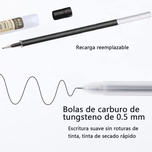 - Textura transparente y mate: el bolígrafo de firma transparente sin marca de agua puede ver la tinta en cualquier momento, lo que es beneficioso para usted para reemplazar el lápiz de recarga o gel a tiempo, de modo que ya no le preocupe el bolígrafo negro sin tinta en viajes de negocios y sin tinta en el examen; El agarre mate te hace más cómodo para escribir.