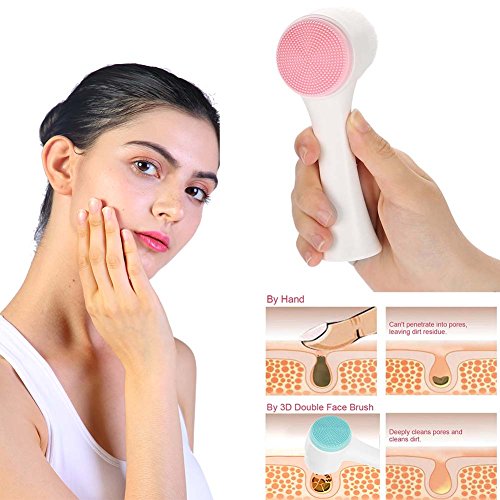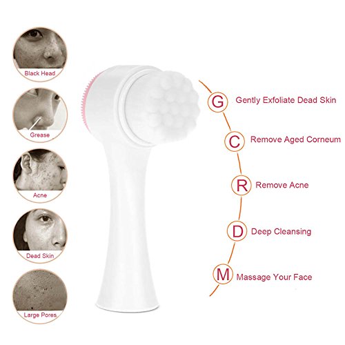 Cepillo de limpieza facial de doble cara para limpiar y exfoliar y masajear cerd