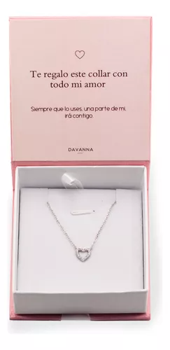 Este collar es una pieza de joyería fina, su delicado dije en forma de corazón, adornado con brillantes incrustaciones de zirconia, captura la luz de una manera que refleja la pureza y la profundidad del amor verdadero.