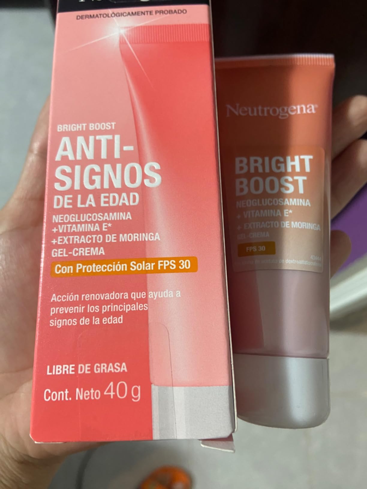 Ingredientes NEOGLUCOSAMINA, VITAMINA E, VITAMINA C, EXTRACTO DE MORINGA Instrucciones Aplique con suaves movimientos sobre la piel limpia del rostro y cuello. Es necesaria la reaplicación del producto para mantener su efectividad Descripción del productoCrema-gel con FPS 30 que protege contra los rayos UVA y UVB y acelera la renovación celular mientras hidrata e ilumina la piel, combatiendo los daños provenientes de la polución que causan el envejecimiento de la piel: perdida de vigor, elasticidad, firmeza, oleosidad y oscurecimiento de la piel. Potencializa la luminosidad de la piel, unifica el tono y textura, atenúa la grasa y los poros dilatados para tener una piel visiblemente más joven, renovada y saludable. Formulada con neoglucosamina + Vitamina C* + Vitamina E** Dermatológicamente probada, no comedogénica, libre de aceites y alcoholes. Con textura ligera de rápida absorción. Apta para todo tipo de pieles y tonos. *En forma de ascorbil fosfato de sodio *En forma de acetato de dextroalfatocoferol |