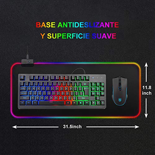 E T EASYTAO RGB Gaming Mousepad de Escritorio, Alfombrilla con Luz Led para Tecl
