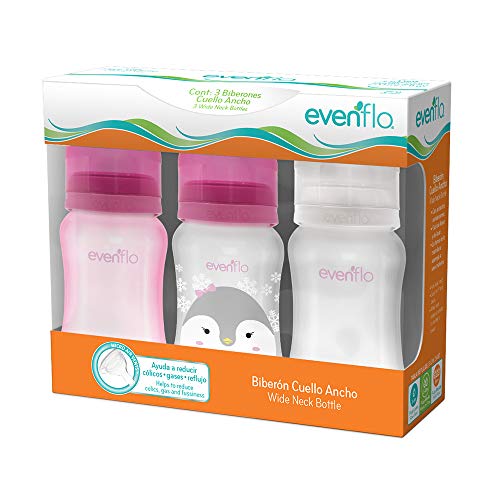 Evenflo, Biberón Forest Anticólicos Cuello Ancho, Niña, Color Rosa, Flujo Medio,