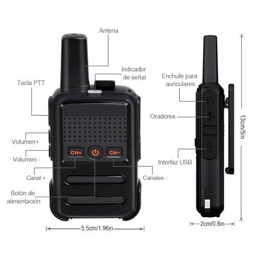 HIFILUZ Walkie Talkie 16 Channel Largo Alcance Radios de Comunicación Lithium Ba