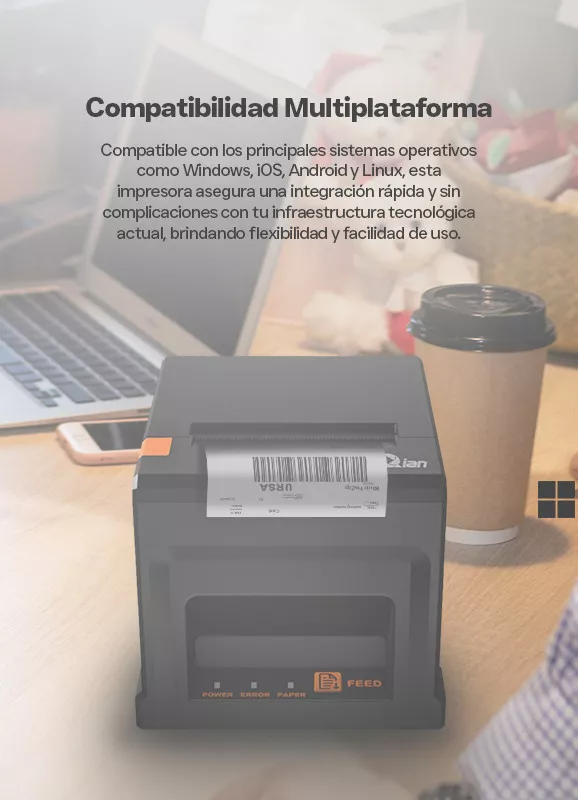 - Maximiza tu capacidad de impresión con el soporte de papel de hasta 80mm de ancho.