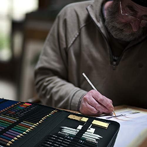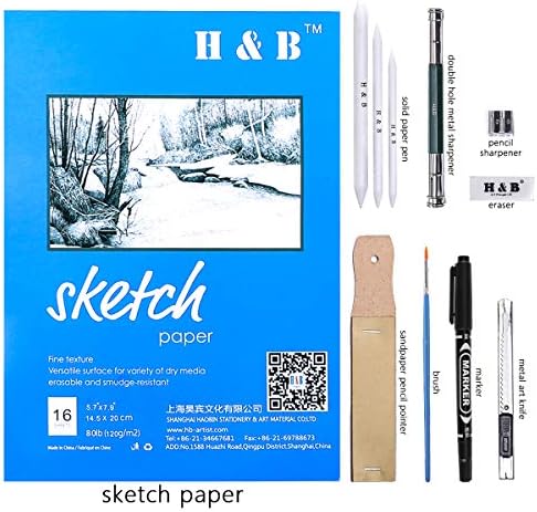 - Juego de dibujo y bocetos: Junto con el puntero de lápiz de papel de lija, extensor de lápiz de doble cabeza, pincel, borrador, tocones de mezcla de papel, afilador, cuchillo de arte, marcador, todos los elementos básicos para dibujar bocetos están en un estuche para garantizar que todas las herramientas estén organizadas