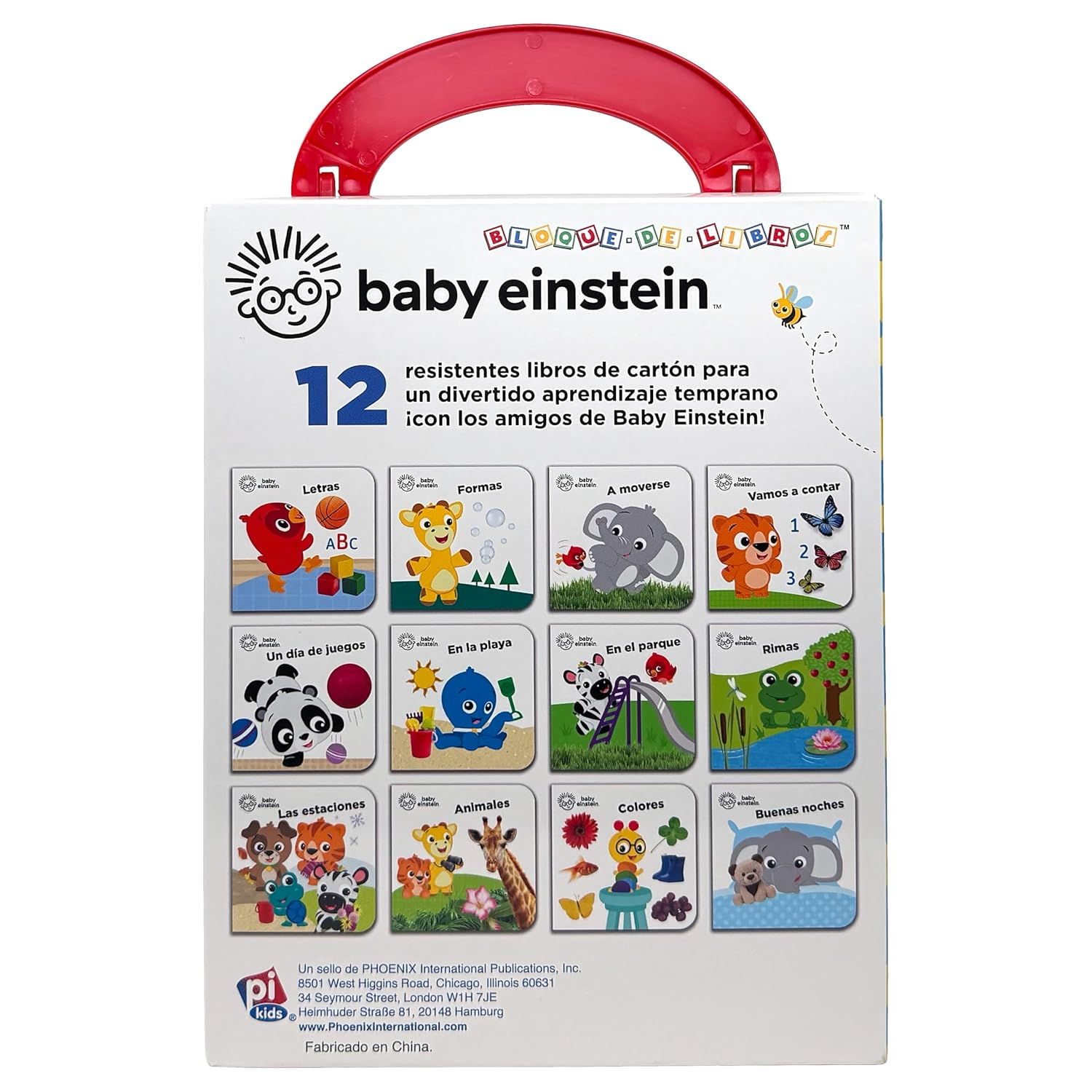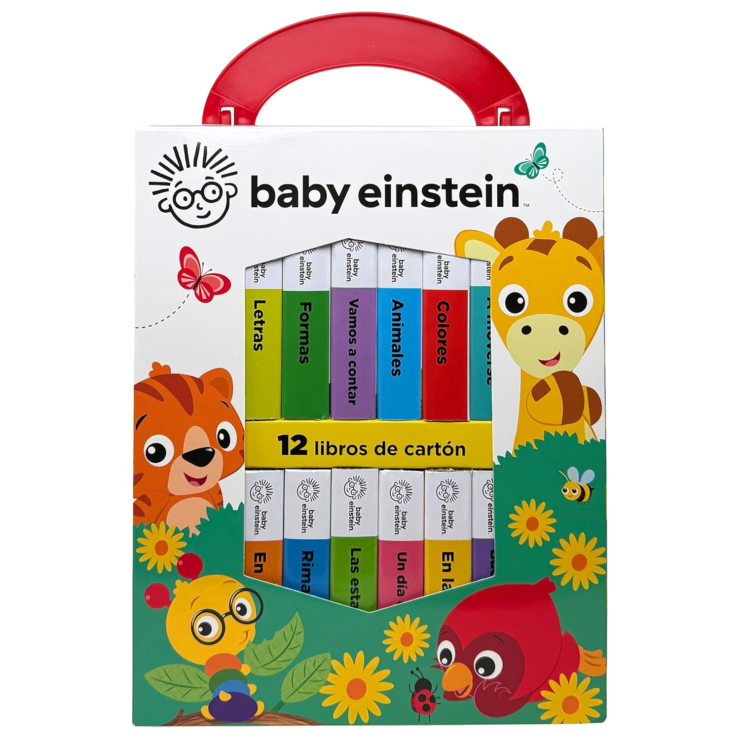 Estuche Perfecto para Niños Este estuche está perfectamente dimensionado para que su niño lo puede cargar donde vaya. Les encantará llevarlos y sacar los libros y volver a ponerlos es ideal para desarrollar habilidades motoras tempranas. 12 Libros de Cartón Cada libro tiene 10 páginas de contenido cada una, lo que hace que esta biblioteca tenga 120 páginas en total, perfecta para brindarle horas de diversión a su pequeño. Los libros son del tamaño perfecto para manos pequeñas. 6.35 cm x 6.35 cm