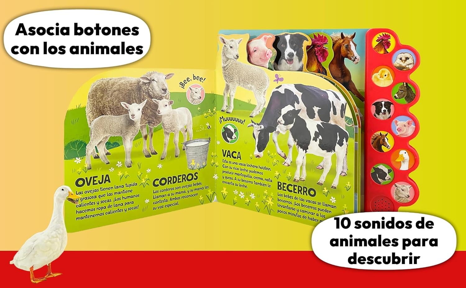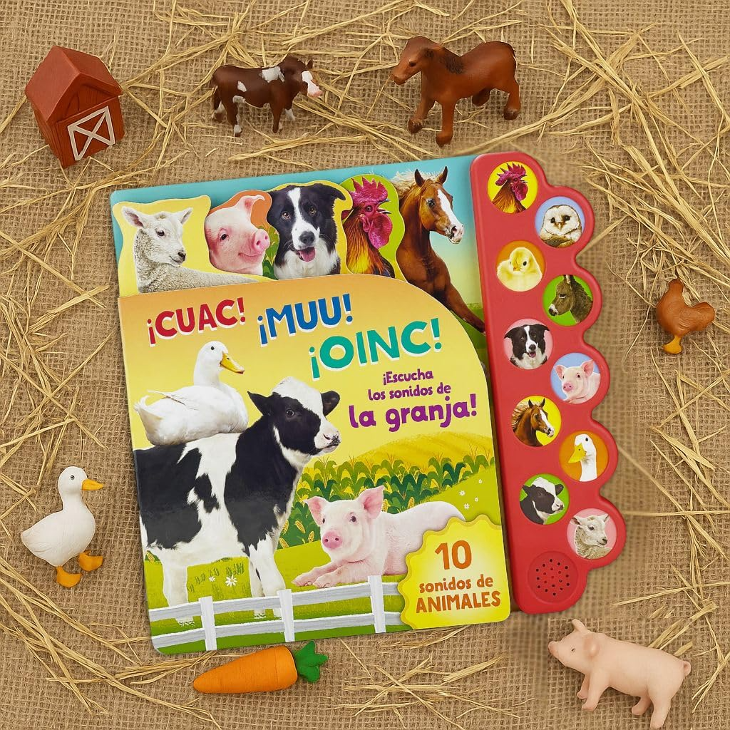 Libro infantil con 10 Sonidos de animales de la Granja / ¡Cuac Muu Oinc! con bot