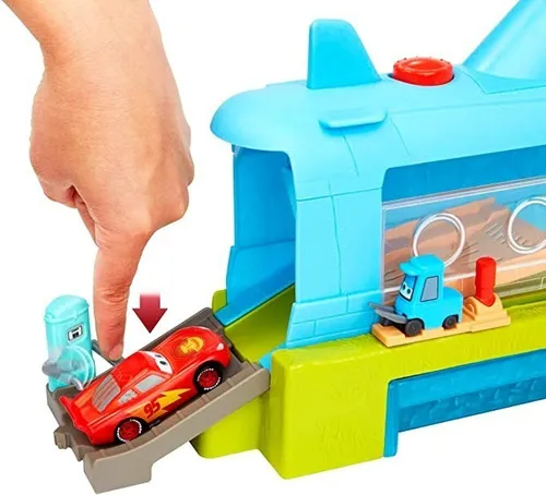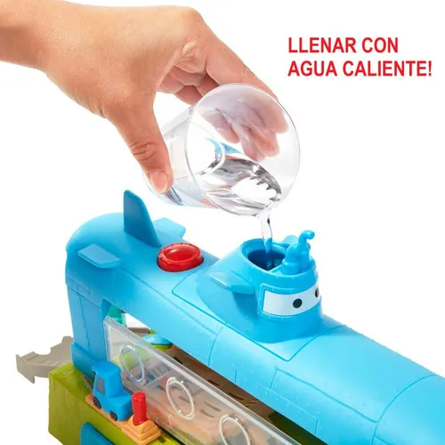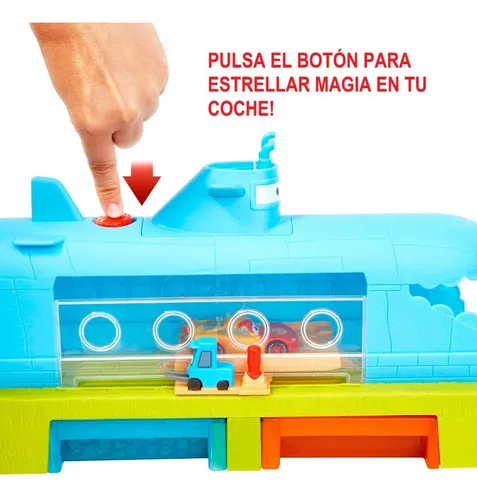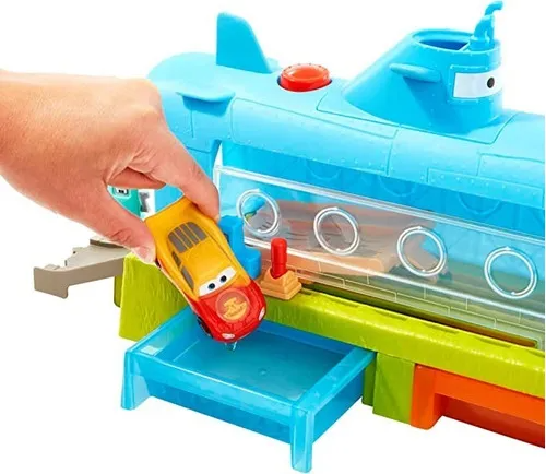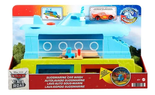 Disfruta del juego de lavado de autos submarino Cars Color Change de Disney y Pixar. Incluye un vehículo Color Change Lightning McQueen para sumergirse en la diversión transformadora desde el primer momento. Capturando un momento icónico de la serie Cars on the Road de Disney+, los niños pueden ver el cambio de color frente a sus ojos. Cargue a Lightning McQueen, luego deslice el asistente del montacargas para mover al corredor a través del lavado de autos con forma de submarino. Un chorro de agua tibia cambia el aspecto del vehículo Color Change; una inmersión en el tanque de agua helada lo cambia de nuevo. Envíe el automóvil a través de los rodillos de espuma de 'secado', cargue combustible en la bomba y conduzca hacia una nueva aventura, luego regrese para limpiar nuevamente. Los fanáticos de Kids and Cars de 3 años en adelante pueden involucrar su imaginación en el juego durante todo el día y pueden coleccionar otros vehículos.