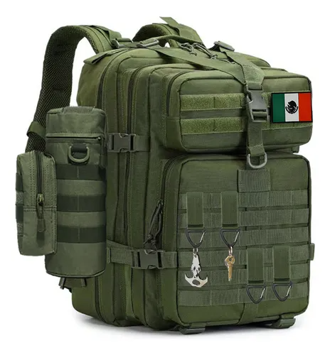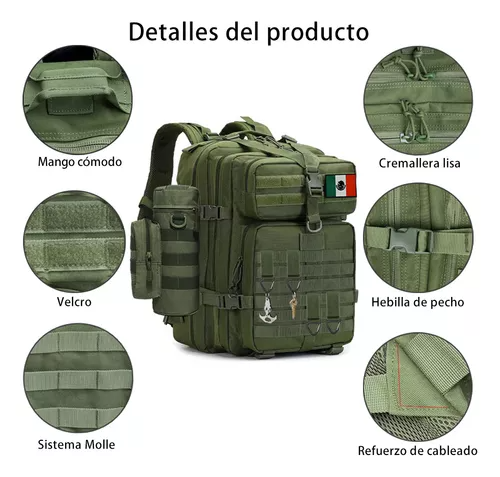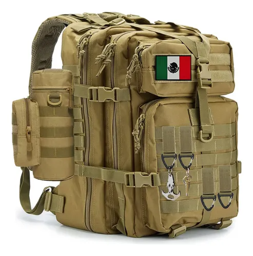 Para mejorar tu experiencia al aire libre, hemos incluido una bolsa para cantimplora con sistema MOLLE, cuatro mosquetones, y una bandera de México con velcro. Estos *accesorios tácticos* no solo aumentan la funcionalidad de tu *mochila*, sino que también te permiten personalizarla según tus preferencias. Cada detalle, desde la conveniencia de la bolsa para cantimplora hasta el toque personal del velcro, está diseñado para ofrecerte confianza y comodidad en cada uso.