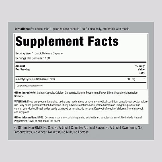 N-Acetyl Cysteine 600 mg (NAC) 100 Capsules by Piping Rock Health Products