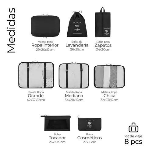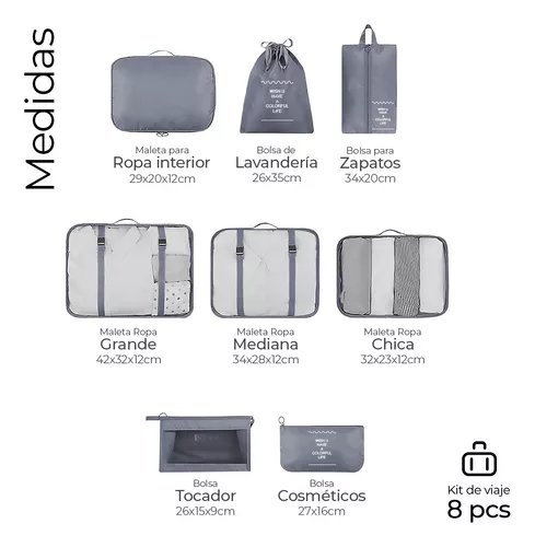 DescripciónOrganiza tus viajes de manera eficiente con el set de organizadores de maletas. Este conjunto de ocho accesorios está diseñado para maximizar el espacio en tu equipaje, permitiéndote mantener tus pertenencias ordenadas y accesibles. Con tres tamaños diferentes, podrás clasificar ropa, calzado y artículos personales de forma práctica y sencilla. |