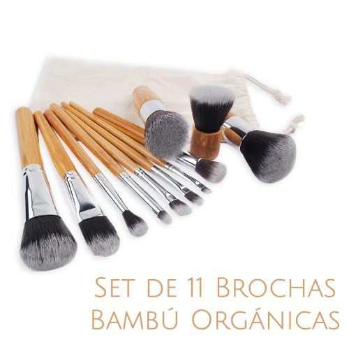 Set Brochas de maquillaje bambu orgánicas estilo Kabuki ecologicas para maquilla