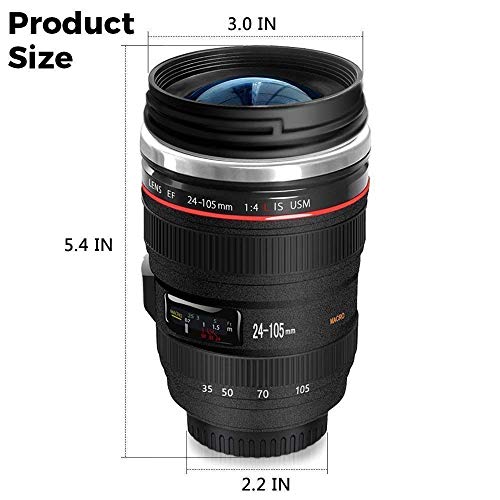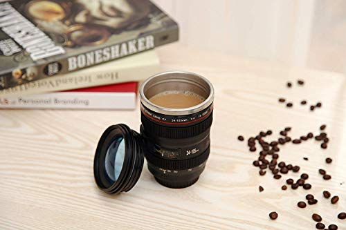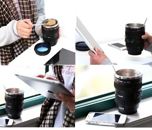 Taza de café,Taza de la lente con tapa Taza de Acero Inoxidable taza del viaje d