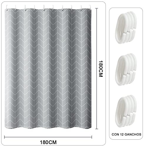 VIDA4U Cortina de Ducha con Ganchos de 180x180cm, Cortina de Plástico Impermeabl