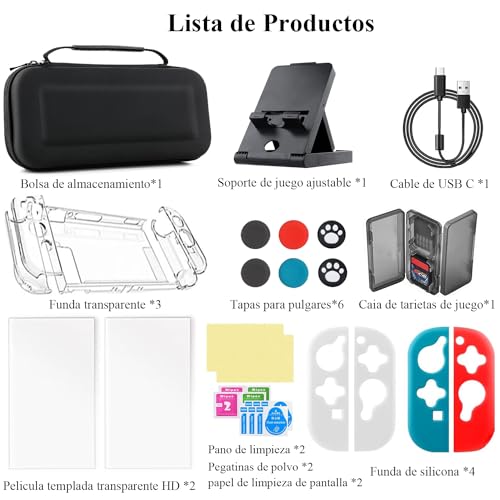 Yarazora Fundas para Nintendo Switch, 25 en1 Estuche Kit de Accesorios Nintendo