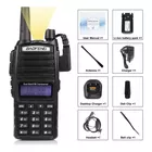 Radio Amateur profesional: 128 canales de almacenamiento, configuración de alta / media / baja potencia, rango de frecuencia: vhf: 136 - 174 MHz (rx / tx). Uhf: 400 - 520 MHz (recepción / transmisión); Banda Ancha (ancha) / estrecha (estrecha) opcional, ahorro de energía, vox, escaneo, despertador, reloj doble. Muestra el menú de funciones en la pantalla "lcd".