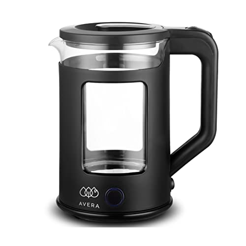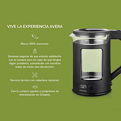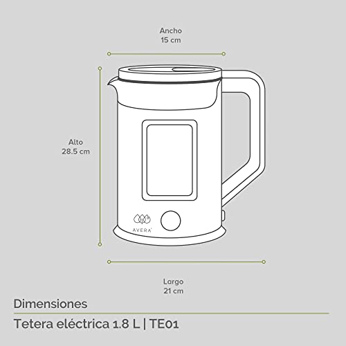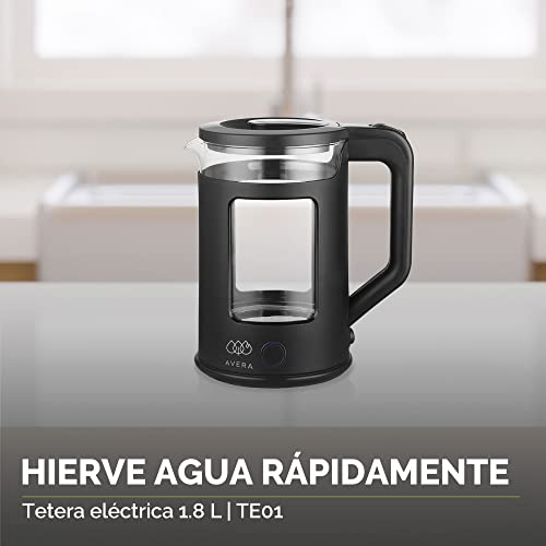 AVERA Tetera Electrica de Vidrio 1.8 Litros 1000W Potencia (Hierve 500ml en tan