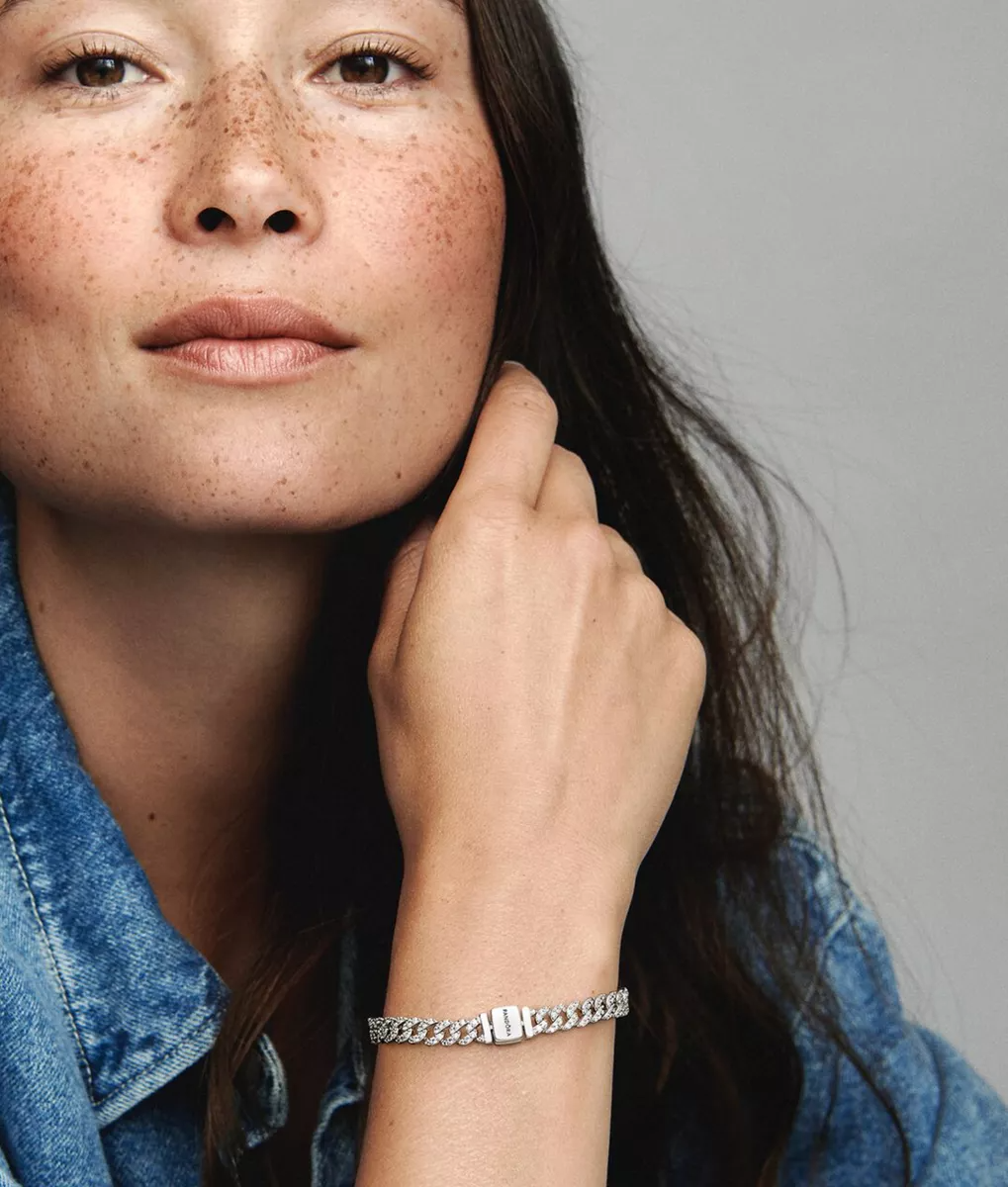 Ver todas las características DescripciónLa Pulsera Pandora de Cadena Cubana es el accesorio ideal para quienes buscan un toque de elegancia y modernidad en su estilo diario. Fabricada en plata 925, esta pulsera destaca por su diseño contemporáneo que se adapta a cualquier ocasión, ya sea un evento formal o un encuentro casual con amigos. Su línea Moments refleja la esencia de la marca, ofreciendo una pieza que no solo es un accesorio, sino una declaración de estilo. |